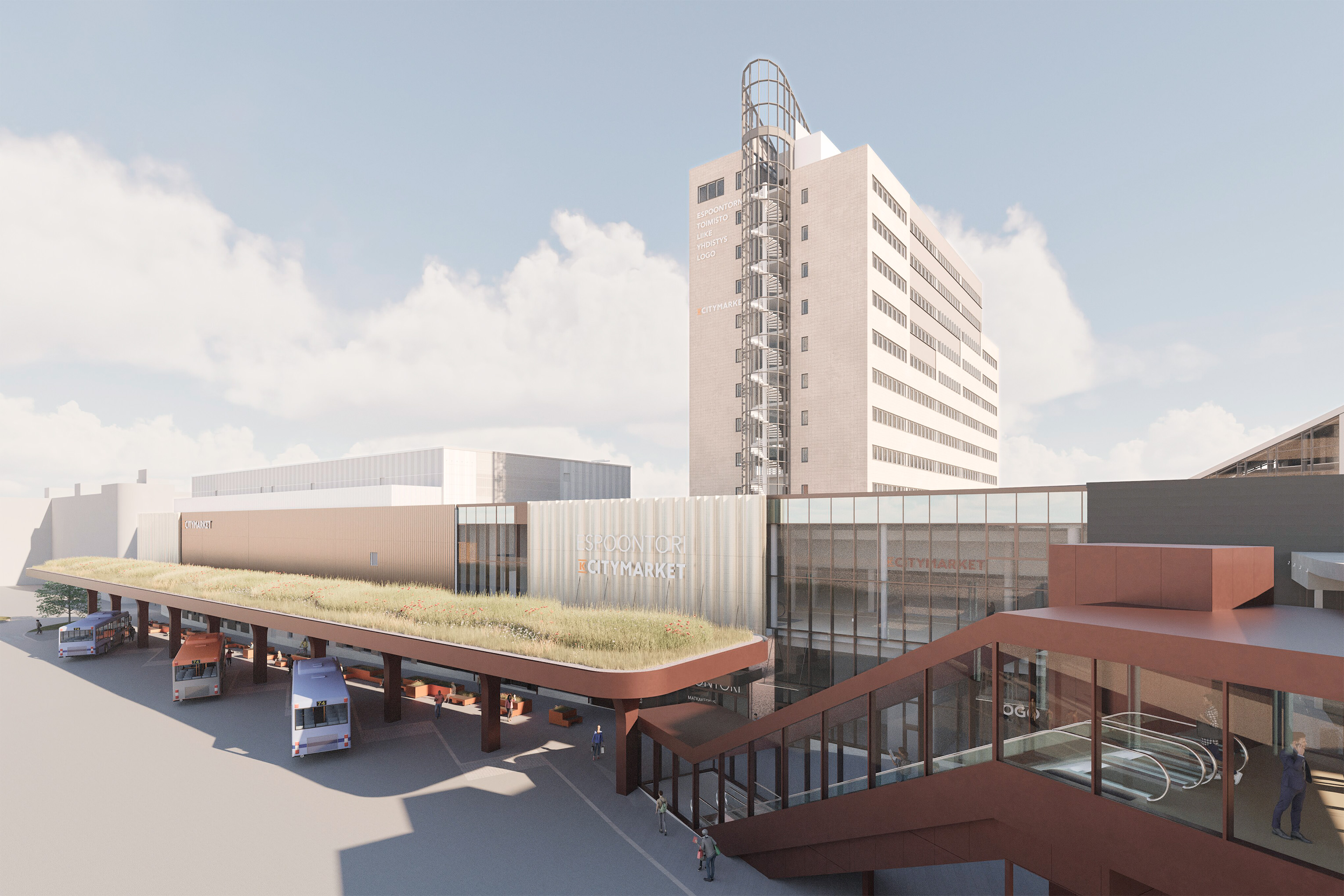 Espoontorin korttelin ympäristöön suunnitellaan bussiterminaalia. Lisäksi suunnitellaan uusi Sihteerinkatu ja parannuksia koko alueen nykyisten katujen turvallisuuteen ja sujuvuuteen.
