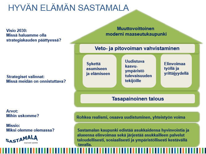 Tervetuloa osallistumaan Sastamalan kaupungin kyselyyn koskien tulevaa kaupungin strategiaa 2018-2021. Tutustu ensin liitteenä olevaan strategialuonnokseen ja vastaa sen jälkeen kyselyymme. Strategialuonnoksen löydät klikkaamalla kohdasta "Näytä lisätiedot".